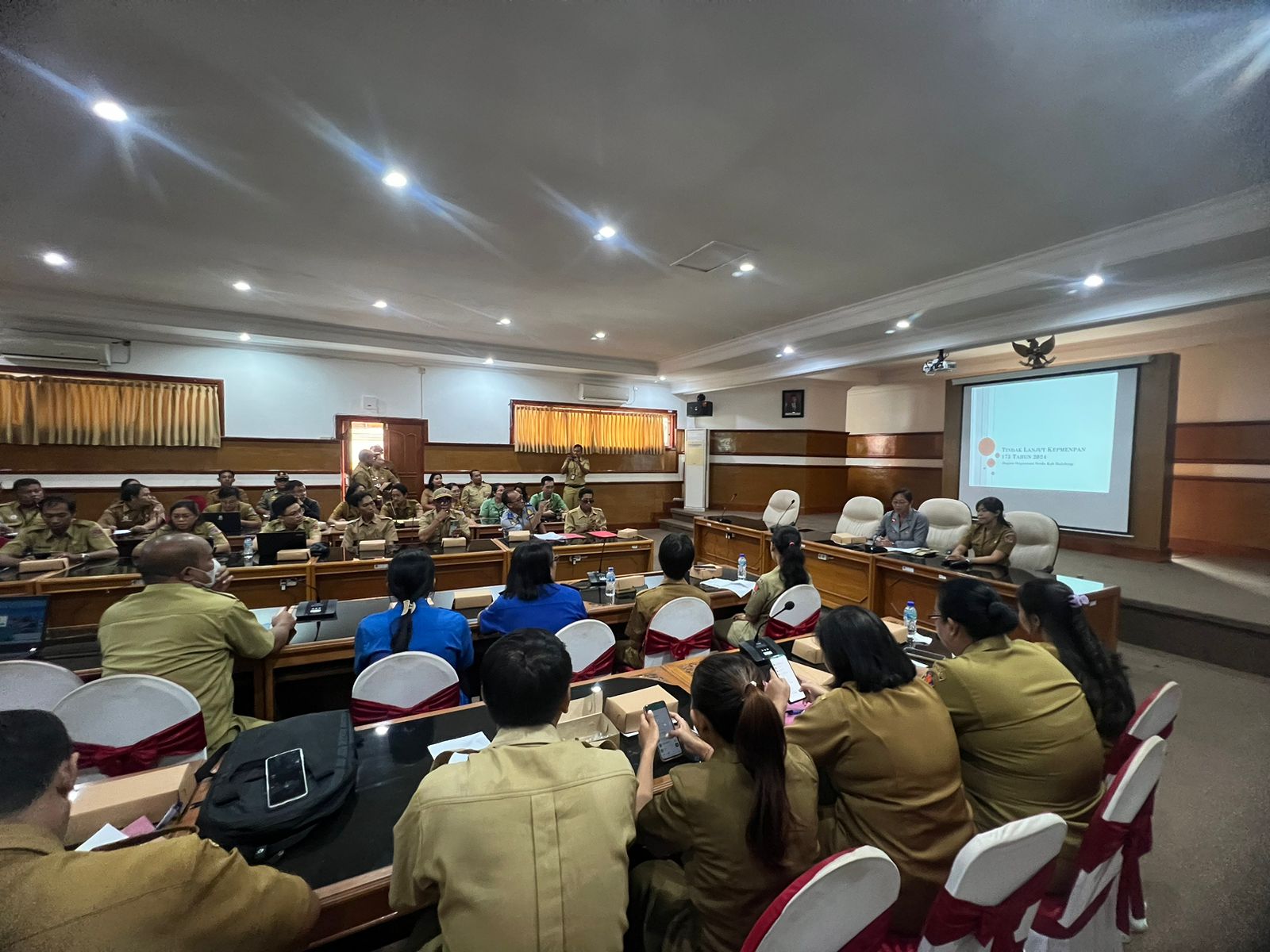 Kasubag Umum dan Keuangan Nyoman Sriyadnya yang di dampingin oleh staf menghadiri undangan Sosialisasi Tindak Lanjut Kepmenpan 173 Tahun 2024 yang bertempat di Ruang Rapat Unit IV Setda Kabupaten Buleleng.