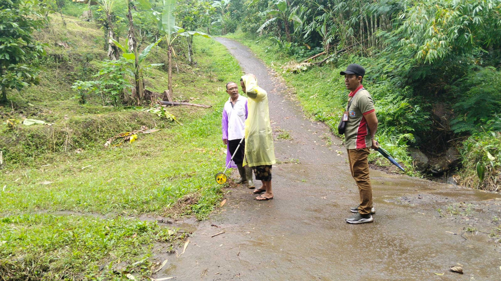 2. Verifikasi Usulan Program PISEW yang bertempat di akses penghubung antara Desa gobleg dan Desa pedawa melalui pengukuran jalan dan penanda koordinat.