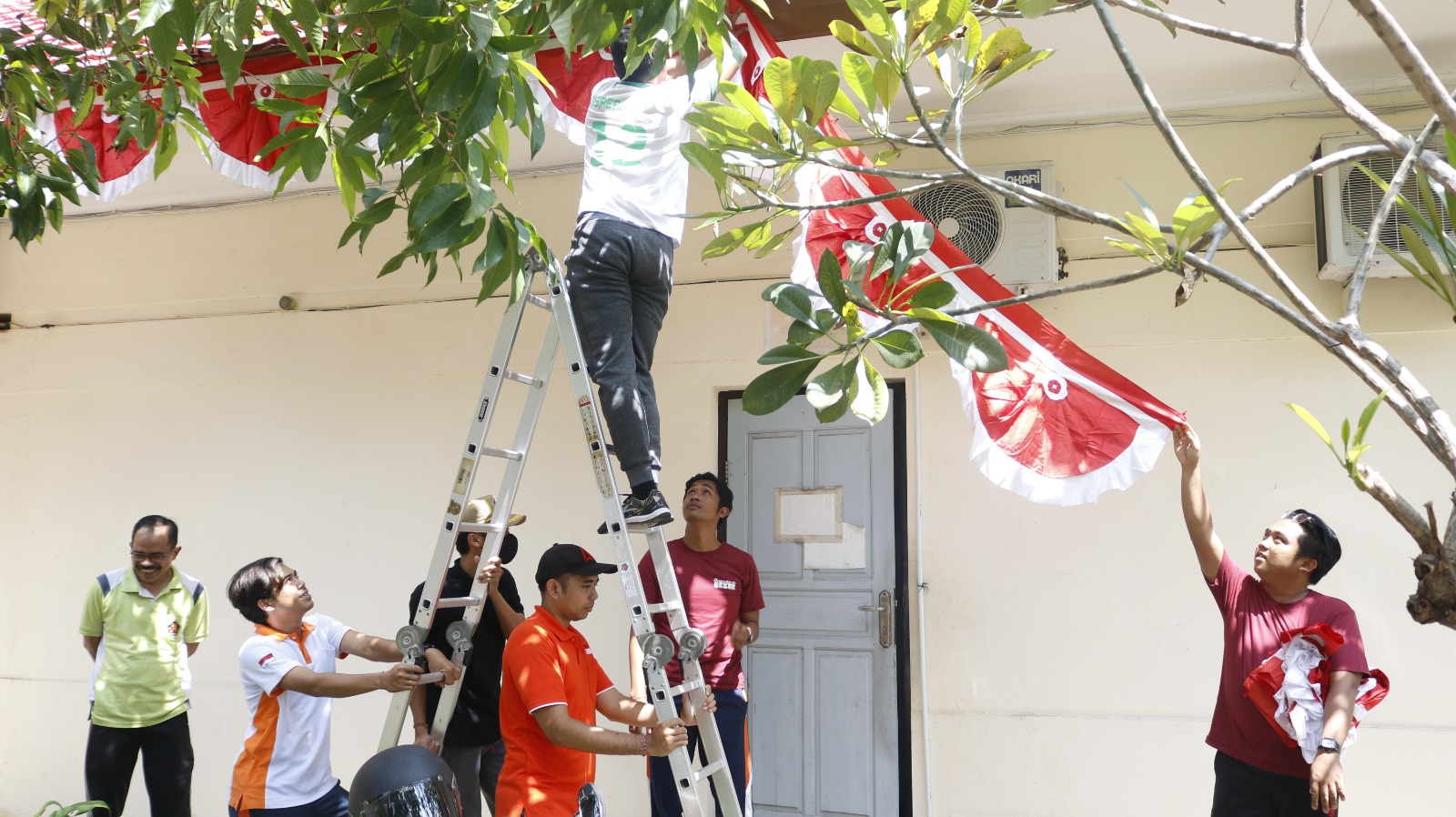 isi dengan pemasangan Bendera Merah putih di seluruh areal kantor, pemasangan