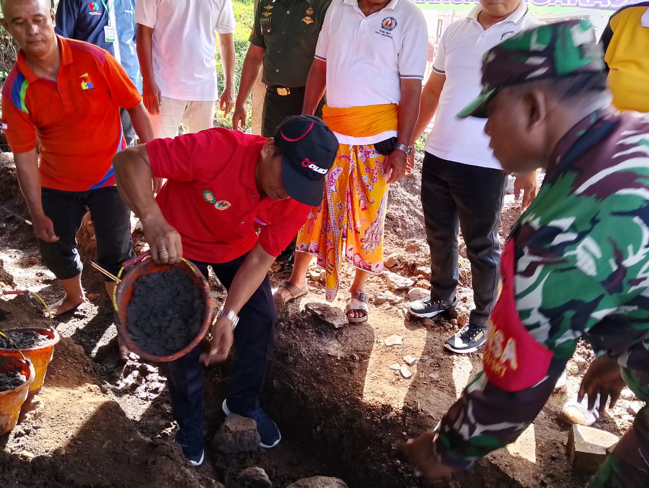 Bapak Nyoman Suarjana bersama Staf Disperkimta melaksanakan kegiatan peletakan Batu Pertama di rumah Putu Purna Wijaya yang berlokasi Banjar Dinas Sorga Mekar, Desa Lokaspaksa, Kec. Seririt, Kabupaten Buleleng,
