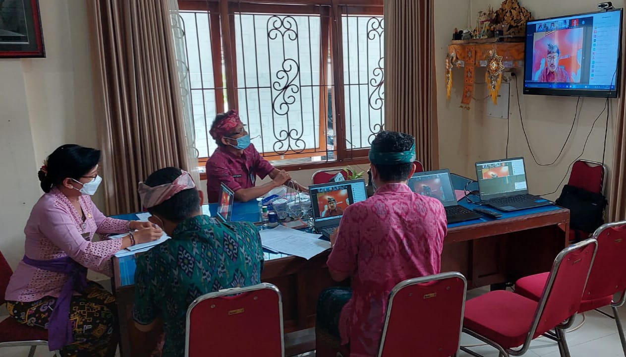 Mengingat meningkatnya lonjakan Covid-19 yang dapat dilihat dengan bertambahnya kasus positif maka kegiatan rapat yang rencananya dilaksanakan secara luring, dirubah dengan pelaksanaan secara virtual melalui aplikasi Zoom Meeting untuk mencegah kerumunan dan mengantisipasi jumlah kasus positif kembali naik.