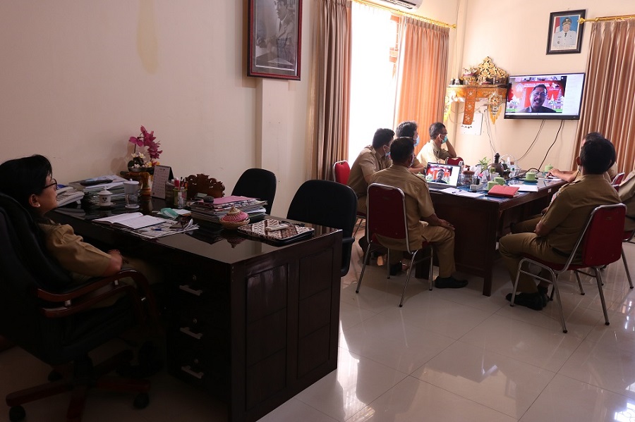 Senin 7 Juni 2021 Dinas Perumahan, Kawasan Permukiman dan Pertanahan Kabupaten Buleleng  mengikuti video conference dengan aplikasi zoom tentang  “Sosialisasi pengisian LKE RB oleh Biro Organisasi Setda Provinsi Bali” dalam rangka persiapan Penilaian Mandiri Reformasi Birokrasi  (PMPRB) oleh Kementrian Pendayagunaan Aparatur Negara dan Reformasi Birokrasi yang diikuti oleh Ibu Kepala Dinas Ni Nyoman Surattini, ST dan Pejabat Struktural Dinas Perumahan, Kawasan Permukiman dan Pertanahan Kabupaten Buleleng. Kegiatan dilaksanakan di Ruang Kepala Dinas Perumahan, Kawasan Permukiman dan Pertanahan Kabupaten Buleleng.