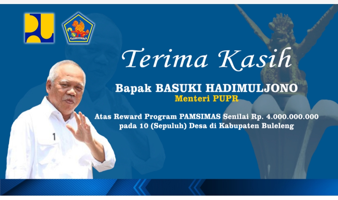Penghargaan sebagai 10 kabupaten pelaksana PAMSIMAS terbaik dari total 408 kabupaten pelaksana Pamsimas diterima langsung oleh Bapak Bupati Buleleng dalam acara RAKORNAS PAMSIMAS III Tahun 2021 di Jakarta. Bapak Menteri PUPR dalam sambutannya menyampaikan akan memberikan penghargaan dalam bentuk program kepada Kabupaten yang berprestasi.