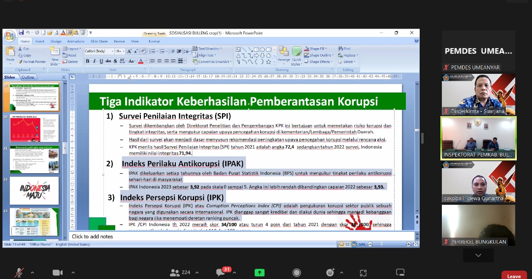 Rabu, 29 November 2023. Sekretaris Dinas Perkimta Buleleng Bapak Ir. Nyoman Suarjana menghadiri secara daring pelaksanaan Zoom Meeting Anti Korupsi melalui Monitoring Center Of Prevention (MCP) KPK.