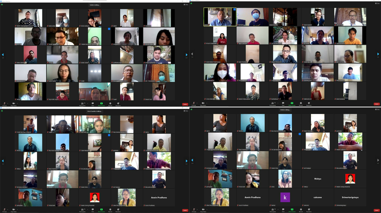 Dalam pelaksanaan kegiatan Zoom Meeting kali ini Sekretaris Dinas Perkimta Kabupaten Buleleng Ir. Nyoman Suarjana mewakili Ibu Kepala Dinas Ni Nyoman Surattini, ST. dalam penyampaian evaluasi kegiatan yang dilaksanakan secara daring. Adapun yang disampaikan Bapak Sekdis pada kesempatan kali ini yaitu menekankan agar seluruh staf Dinas Perkimta disiplin menjalankan dan menerapkan aturan yang berlaku mengenai penerapan Protokol Kesehatan guna menghindari diri dari penuluran dan penyebaran Virus Covid-19. Selain itu, juga disampaikan agar seluruh pegawai melaksanakan segala kegiatan dengan tetap melaksanakan Tugas Dinas dengan baik dan memperhatikan protokol kesehatan meskipun dalam kondisi melaksanakan pekerjaan dari rumah masing-masing atau Work From Home.