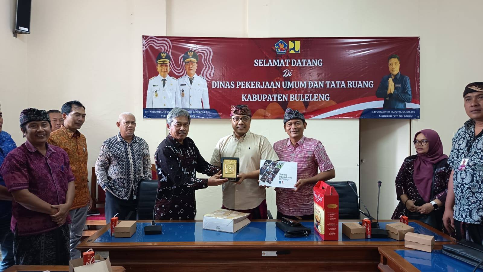 Dinas Pekerjaan Umum, Perumahan dan Kawasan Permukiman Kabupaten Sleman Yogyakarta mengadakan studi komparasi ke Dinas Pekerjaan Umum dan Tata Ruang Kabupaten Buleleng terkait regulasi penataan bangunan, perijinan bangunan gedung, penataan sumber daya air, pengelolaan air minum perdesaan, strategi pengadaan barang/jasa e-catalog versi 6 dan inovasi jalan cantik/pengaspalan jalan dengan menggunakan campuran aspal plastik yang telah dilaksanakan oleh Dinas PUTR Kabupaten Buleleng.