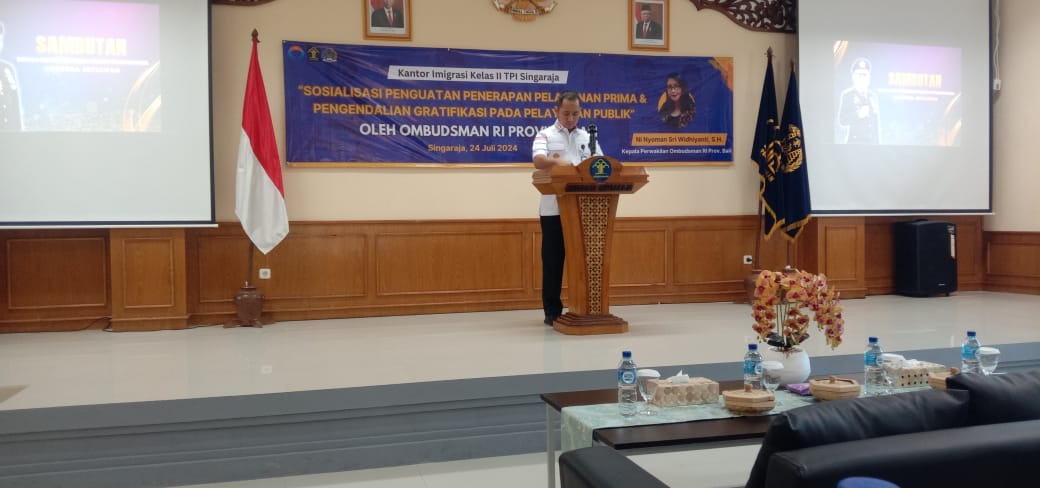 Kegiatan ini dibuka langsung oleh Kepala Kantor Imigrasi Kelas II TPI Singaraja Bapak Hendra Setiawan dan menghadirkan narasumber dari Kepala Perwakilan Ombudsman RI Provinsi Bali Ibu Ni Nyoman Sri Widhiyanti dan kegiatan sosialisasi ini dihadiri oleh seluruh perwakilan dari masing2 SKPD