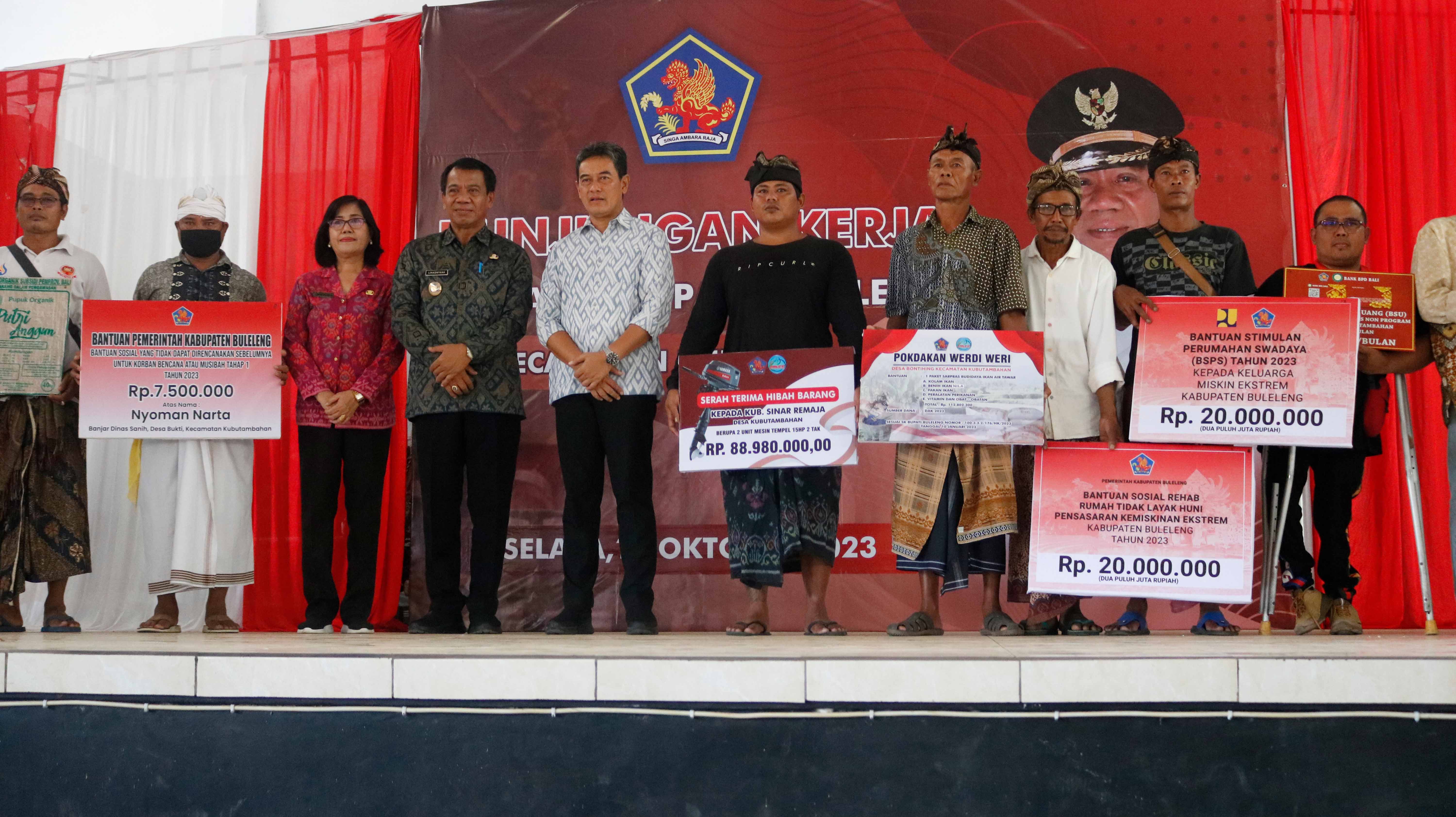 Berlangsung di Gedung Serbaguna Desa Bukti, Bapak Lihadnyana memberikan beberapa simbolis bantuan kepada masyarakat Miskin Ekstrim yakni bantuan sembako, bantuan alat penunjang disabilitas sampai dengan penyerahan bantuan rehabilitasi rumah tidak layak huni.