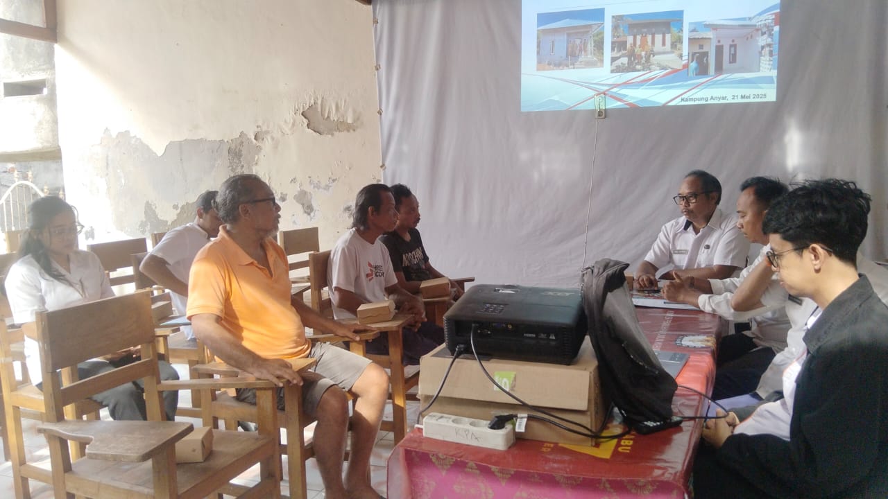 Rabu, 21 Mei 2025, Penata Kelola Bangunan Gedung dan Kawasan Permukiman Ngurah Arya Kusuma bersama staf melaksanakan sosialisasi Pelaksanaan Bantuan Sosial Rumah Tidak Layak Huni (RTLH) APBD Buleleng Tahun Anggaran 2025 di Kantor Lurah Kampung Anyar, Kecamatan Buleleng.