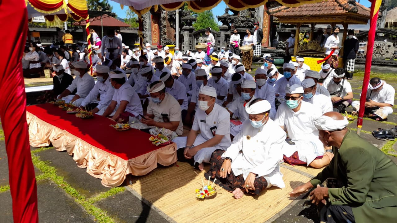 Kamis, 17 Maret 2022. Dinas Perumahan, Kawasan Permukiman dan Pertanahan Kabupaten Buleleng melalui Sekretaris Dinas Bapak Ir. Nyoman Suarjana didampingi beberapa staf Disperkimta, hadir untuk menghaturkan Bakti Penganyar di Pura Ulun Danu Bulian Desa Adat Pancasari Kecamatan Sukasada.