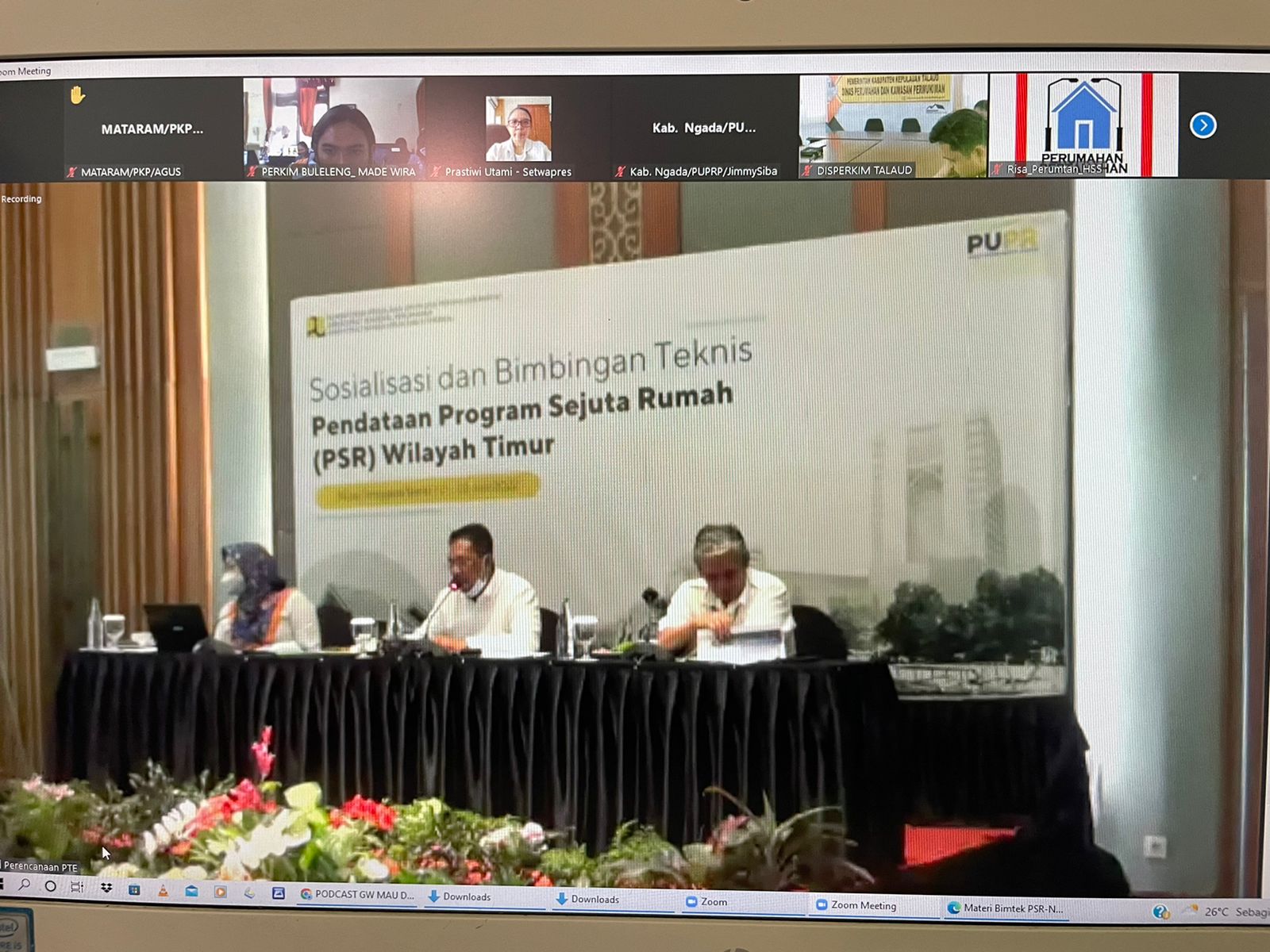 Sosialisasi dan bimbingan teknis dihadiri oleh salah satu staf Bidang Perumahan Bapak I Made Wira Sastra Mahayana, S.Tr.Spl. yang dilaksankan secara daring melalui aplikasi Zoom Meeting. Kegiatan sosialisasi diselenggerakan oleh Kementrian PUPR Direktorat Umum dan komersial.
