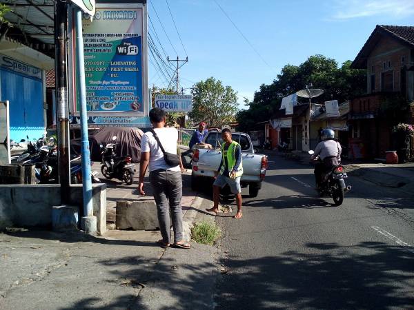 Singaraja, 4 April 2018 para petugas drainase Bidang AMPL (Air Minum dan Penyehatan Lingkungan) pada Dinas Pekerjaan Umum dan Penataan Ruang Kabupaten Buleleng melakukan pembersihan/pengerukan saluran drainase/trotoar yang mengalami pendangkalan pada saluran di Jalan Srikandi Singaraja.