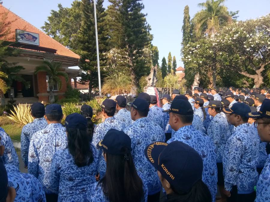 Apel berlangsung tepat pukul 07:30 wita diikuti Seluruh pegawai lingkup Pemkab Buleleng dan BUMD, dalam kesempatan itu Wakil Bupati Buleleng dr. I Nyoman Sutjidra, Sp.OG bertindak sebagai Inspektur Upacara.