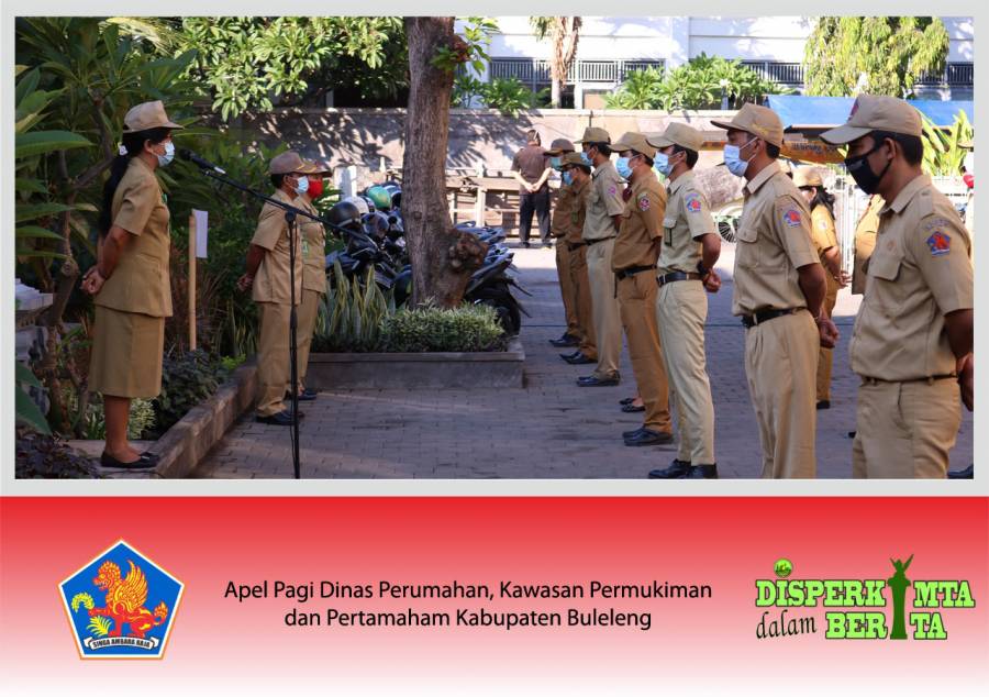 Apel pagi yang dilaksanakan di halaman kantor Dinas Perumahan, Kawasan Permukiman dan Pertanahan Kabupaten Buleleng pada hari Senin, 26 Oktober 2020 dipimpin oleh Ibu Kepala Dinas Perumahan, Kawasan Permukiman dan Pertanahan Kabupaten Buleleng Ni Nyoman Surattini, ST. Apel tersebut diikuti oleh pejabat struktural dan staf yang bertugas apel.