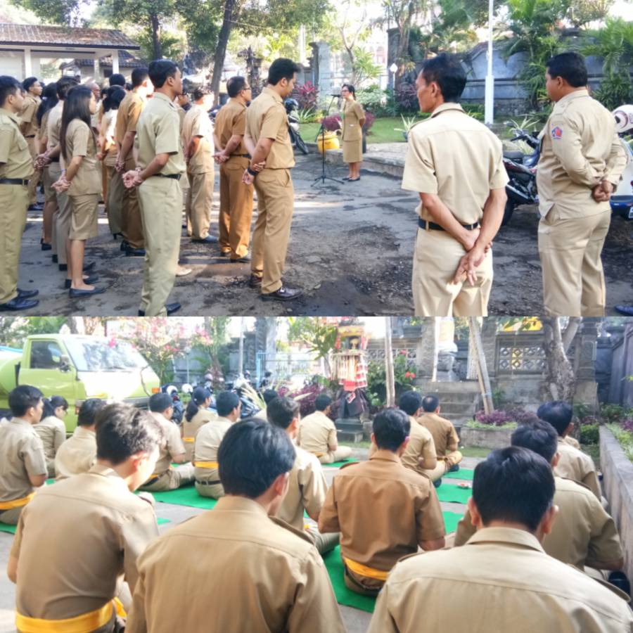 Setelah memberikan pengarahan, seluruh karyawan/karyawati Disperkimta melakukan persembahyangan bersama sebelum memulai aktivitas kantor sehari-hari memohon kerahayuan dan keselamatan kepada Tuhan Yang Maha Esa untuk kelancaran dalam melaksanakan tugas.