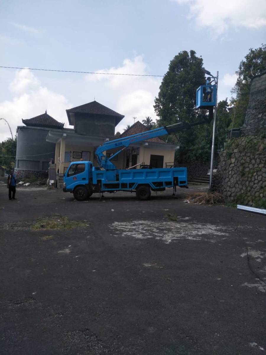 Berlokasi di Desa Banyuatis, Kecamatan Banjar, Kabupaten Buleleng (18/01/19) tenaga pemeliharaan Penerangan Jalan Umum (PJU) Dinas Pekerjaan Umum dan Penataan Ruang Kabupaten Buleleng melakukan pemasangan tiang lampu penerangan jalan umum lengkap dengan ornamen dengan lampu LED 60 watt, dibantu dengan penggunaan Truck Skylift, dimana penggunaan Truck Skylift tentunya akan memudahkan para tenaga pemeliharaan PJU dalam menjangkau tingginya letak atau posisi lampu saat pemasangan pada tiang penerangan jalan umum. *HMd*