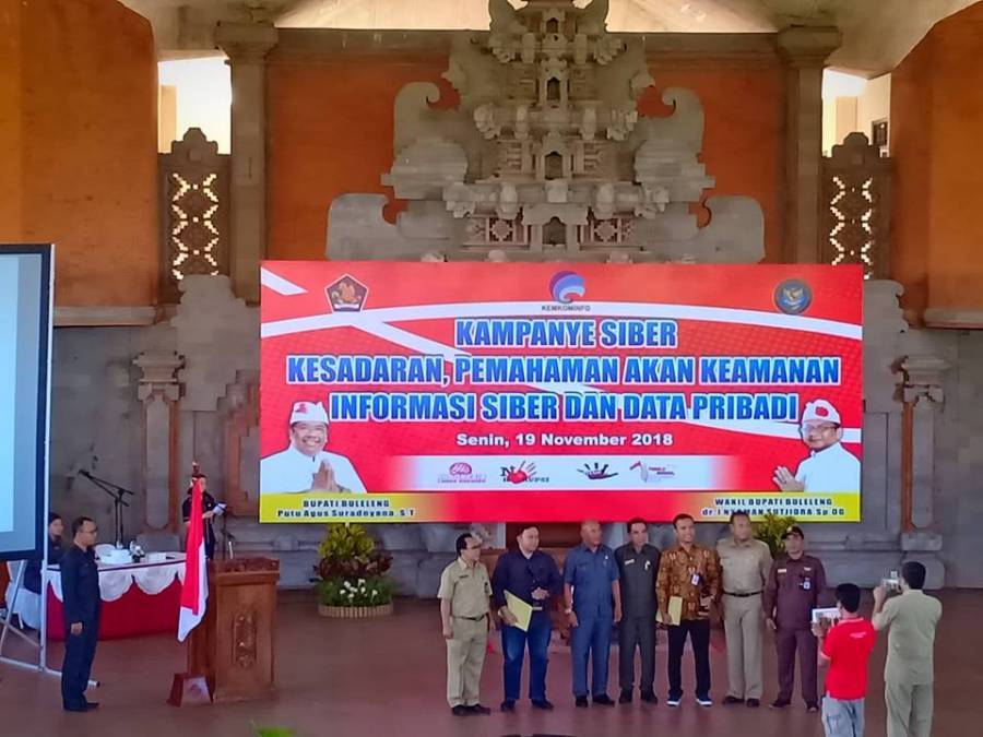 Pada kesempatan itu Bapak Bupati Buleleng Putu Agus Suradnyana,ST berhalangan hadir sehingga dalam sambutannya di bacakan oleh Asisten III Setda Kabupaten Buleleng Drs. I Ketut Asta Semadi, MM. dalam sambutannya disampaikan bahwa kita perlu memilah dan memilih dengan bijak informasi yang kita dapatkan dan mengamankan informasinya dari Kebocoran. Kebocoran yang paling rentan adalah dari aspek manusia karena lebih dari 70 persen kebocoran tersebut disebabkan oleh faktor manusia dan Akhir-akhir ini telah marak terjadi pencurian data ataupun password, pencurian alat penyadapan, perusakan data seperti hacking/craking ataupun snifing, maka dari itu dengan adanya kampanye siber ini dapat meningkatkan Aparatur Pemerintah Kabupaten Buleleng dan seluruh Masyarakat untuk melakukan Keamanan Informasi serta penguatan organisasi agar dapat lebih efektif sesuai peran dan fungsinya. selain itu, disampaikan juga Pemkab Buleleng akan membentuk tim CIRT ( Ciber Insident Respon Tim). yang bertujuan untuk mengidentifikasi, mendeteksi, memproteksi, penanggulangan serta pemulihan keamanan informasi elektronik dari ancaman para hacker baik dari dalam maupun luar negeri.