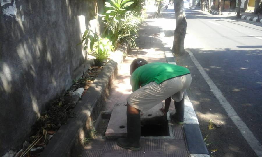 Tak terlepas, pengecekan saluran drainase/gorong-gorong pada trotoar jalan juga dilakukan oleh para petugas/tenaga drainase Bidang Air Minum dan Penyehatan Lingkungan (AMPL) Dinas Pekerjaan Umum dan Penataan Ruang Kabupaten Buleleng melaui manhole atau penutup trotoar, seperti yang dilakukan oleh para petugas drainase di sepanjang trotoar di Kelurahan Banyuasri - Singaraja (12/11 2018).