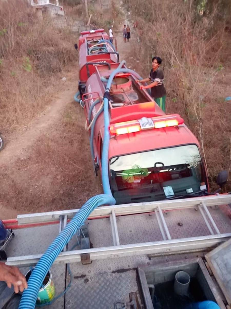 Dinas Perumahan, Permukiman dan Pertanahan Kabupaten Buleleng membantu menyuplay air pada Dinas Pemadam Kebakaran Kabupaten Buleleng untuk membantu memadamkan kebakaran di lahan Jalur Jageraga pada hari Jumat 11 Oktober 2019.