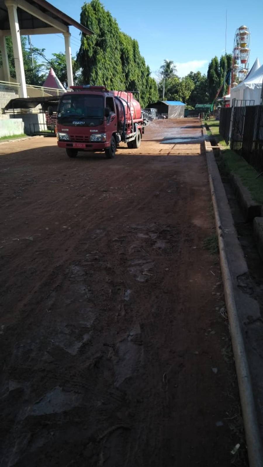Operasional kendaraan penyiraman Dinas Perumahan, Permukiman dan Pertanahan Kabupten Buleleng membatu menyiram area Hiburan Rakyat dan Pekan Apresiasi Seni Ajang Kembangkan UMKM Kabupaten Buleleng bertempat di GOR Bhuana Patra Singaraja.