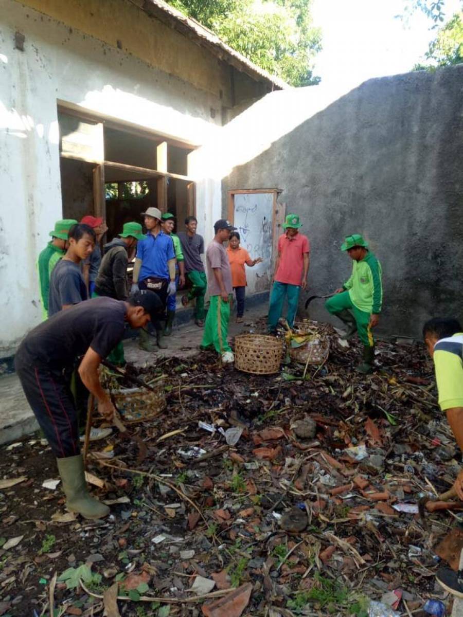 Disperkimta dan Dinas Lingkungan Hidup Kabupaten Buleleng dibantu masyarakat Banjar Jawa melaksanakan perbersihan di Exs. Bank Perniagaan Umum, di Jln Gajah Mada.