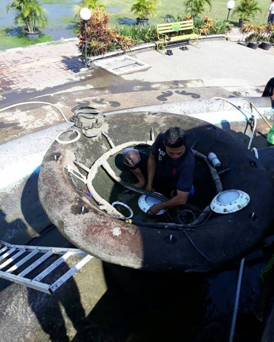 Kegiatan pemeliharaan instalasi listrik dan kolam air mancur oleh Dinas Perumahan, Permukiman dan Pertanahan di Taman Kota I Gusti Ngurah Rai, Singaraja