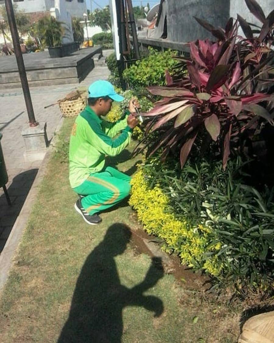 Adapun kegiatan yang dilaksanakan hari ini yaitu : penyiraman, pembersihan, pemotongan rumput dan penataan tanaman