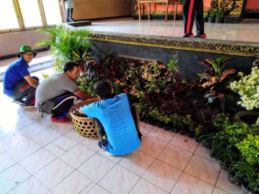 Kegiatan penataan dekorasi oleh Dinas Perumahan, Permukiman dan Pertanahan Kabupaten Buleleng di Gedung Laksmi Graha dalam rangka penyerahan hadiah lomba kesatuan gerak PKK-KKBPK kesehatan tingkat Kabupaten Buleleng tahun 2019.