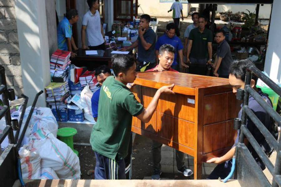 Kegiatan pindah pindah menuju kantor baru Dinas Perumahan, Kawasan Permukiman dan Pertanahan yang baru di Jl. Teleng pada hari Selasa, 14 Januari 2020
