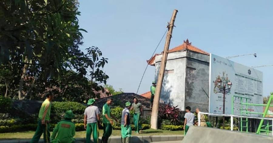Kegiatan Pemangkasan Pohon Perindang oleh Dinas Perumahan, Permukiman dan Pertanahan Kabupaten Buleleng di Taman Yuwana Asri Singaraja, pada hari Senin 14 Oktober 2019.