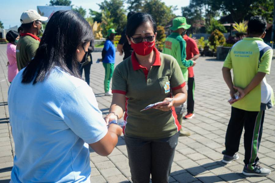 Kegiatan Pembagian Masker untuk pegawai THL Dinas Perumahan, Kawasan Permukiman dan Pertanahan yang diberikan langsung oleh Ibu Kadis Dinas Perumahan, Kawasan Permukiman dan Pertanahan, Ibu Nyoman Surattini, ST. Dalam kegiatan ini, Ibu Kadis menghimbau seluruh pegawai agar selalu menjaga kesehatan dan selalu menggunakan APD berupa masker setiap bekerja maupun kegiatan lain yang berlangsung diluar rumah. Dihimbau juga, untuk pegawai yang sudah berumur lebih dari 50 tahun dan yang sedang dalam kondisi tidak baik/sakit agar beristirahat dirumah. Besar harapan Ibu Nyoman Surattini beserta keluarga besar Dinas Perumahan, Kawasan Permukiman dan Pertanahan agar Pandemi Covid-19 ini segera berakhir dan kita semua dapat berkegiatan sebagaimana biasa.