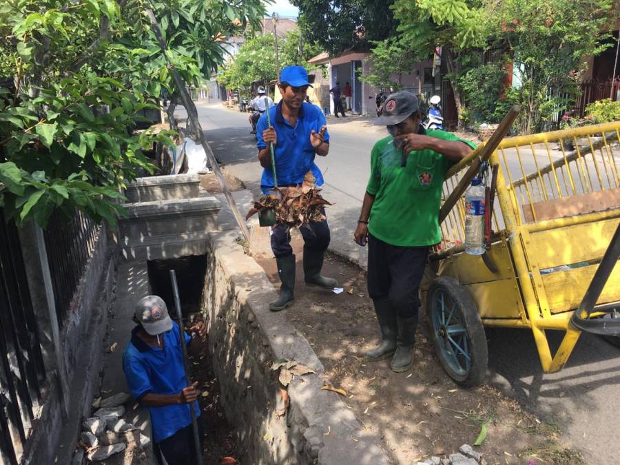 Singaraja, 8 November 2018 para petugas drainase Bidang Air Minum dan Penyehatan Lingkungan (AMPL) Dinas Pekerjaan Umum dan Penataan Ruang Kabupaten Buleleng melakukan pembersihan/pengerukan saluran drainase di seputar kawasan Kecamatan Kota Seririt.