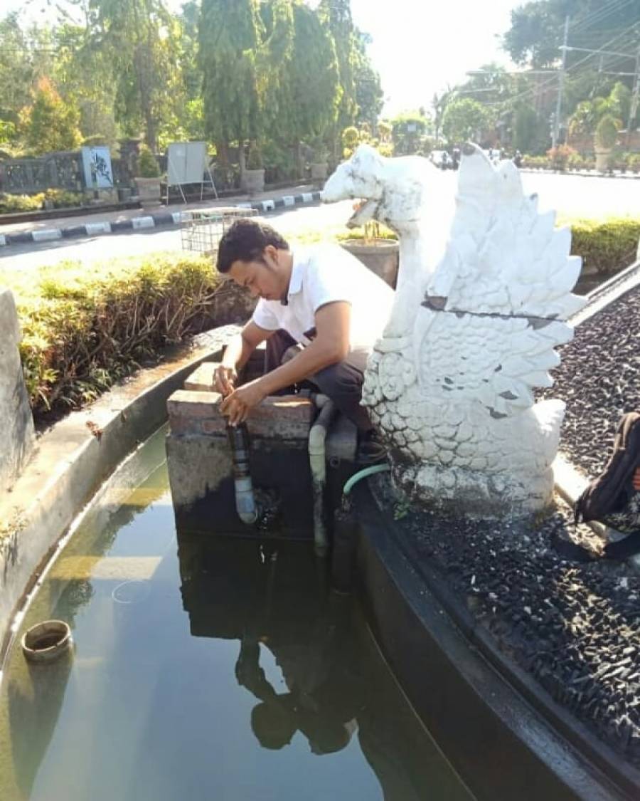 Kegiatan Pemeliharaan Kolam Tugu Singa dan Pemeliharaan Lampu Taman di Taman Panji Sakti oleh Dinas Perumahan, Permukiman dan Pertanahan pada hari Rabu 30 Oktober 2019.