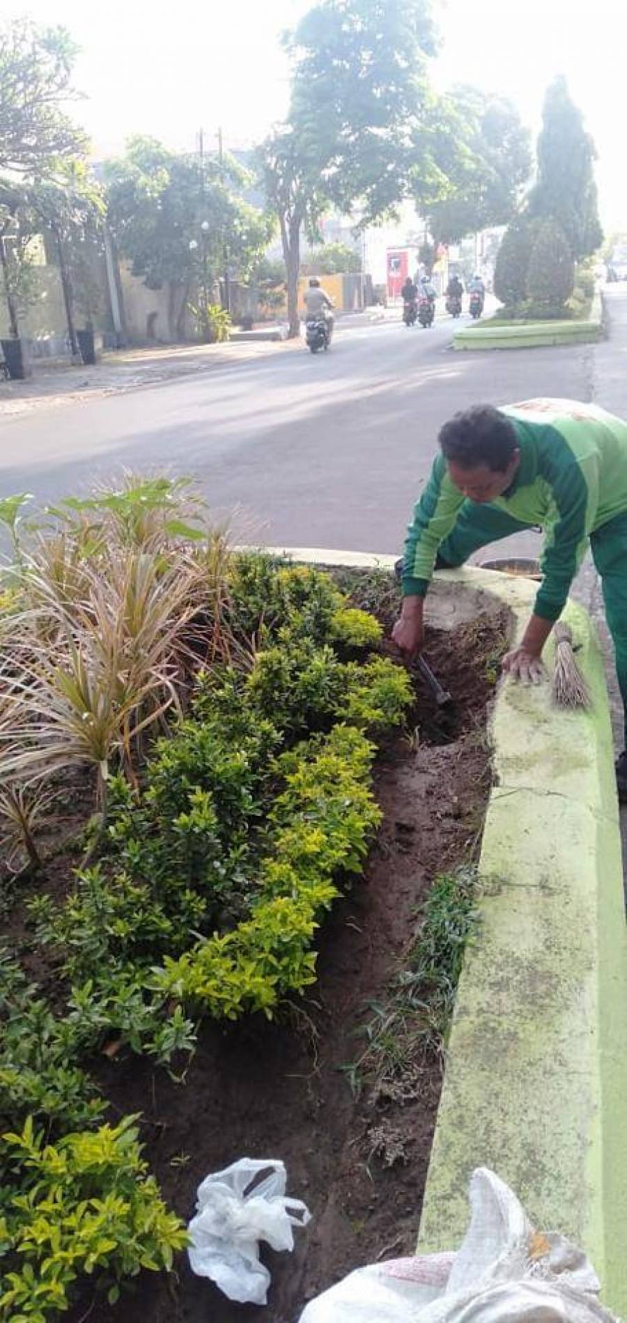 Pemeliharaan taman telajakan berupa pembersihan taman dari daun daun kering, pemeliharaan rumput berupa pemotongan rumput secara teratur dan memperbaiki kegemburan tanah, pada hari Senin, 7 Oktober 2019.