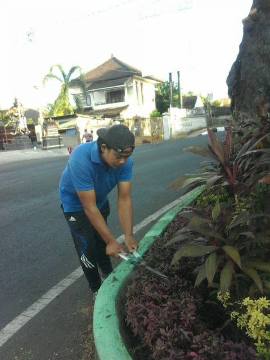 Tenaga Kontrak Teknis Lainnya (Tenaga Pertamanan) Dinas Perumahan, Permukiman dan Pertanahan Kabupaten Buleleng pada Hari Jumat 16 Agustus 2019, melaksanakan kegiaatan pemeliharaan taman Telajakan di Jalan Jendral Sudirman Singaraja. Pemeliharaan meliputi pemangkasan tanaman, pembersihan tanaman rumput liar, pemupukan tanaman, penggemburan tanah di sekitar taman sehingga taman menjadi lebih indah dan asri.