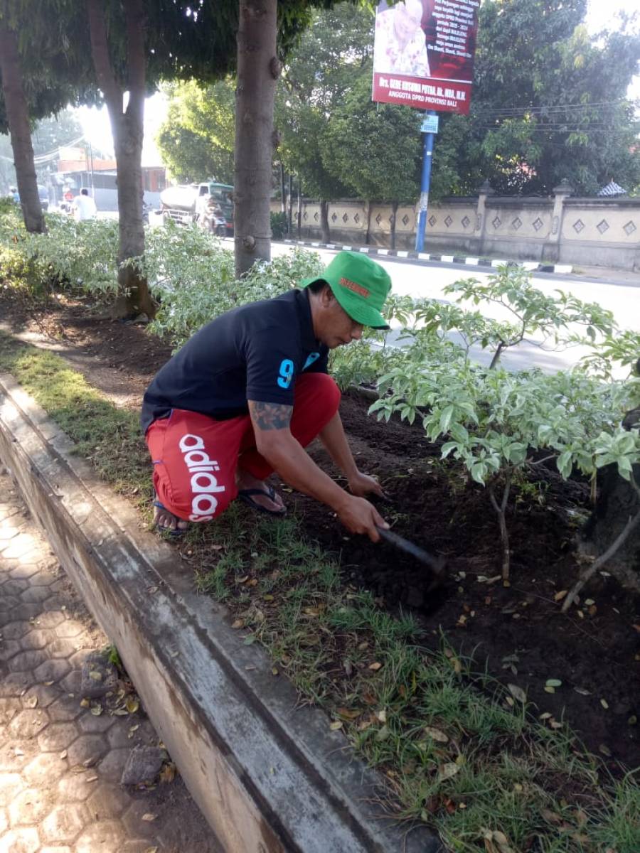 Tenaga Kontrak Teknis Lainnya (Tenaga Pertamanan) Dinas Perumahan, Permukiman dan Pertanahan Kabupaten Buleleng pada Hari Kamis 18 Juli 2019, melaksanakan kegiaatan pemeliharaan taman Telajakan di Jalan Mayor Metra Singaraja. Pemeliharaan meliputi pemangkasan tanaman, pembersihan tanaman rumput liar, pemupukan tanaman, penggemburan tanah di sekitar taman sehingga taman menjadi lebih indah dan asri.