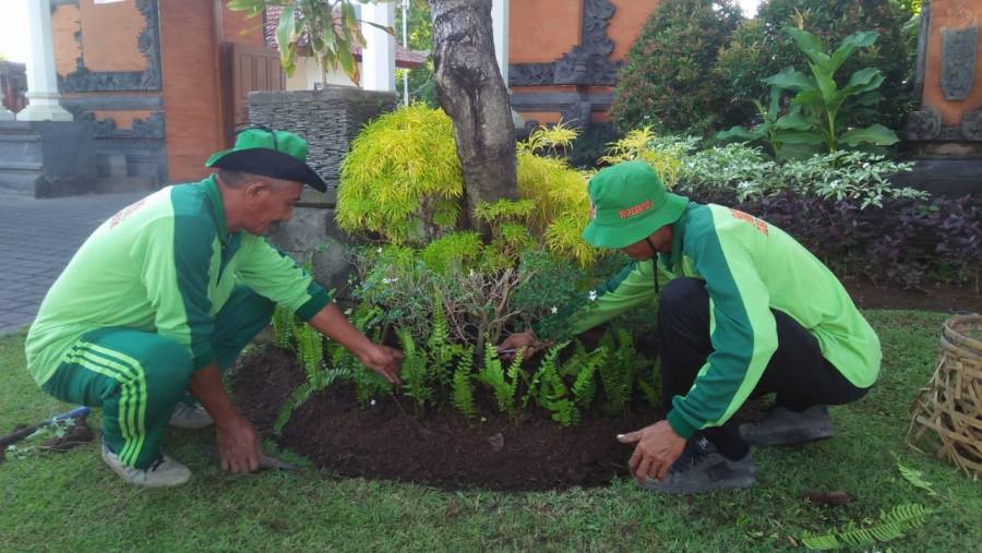 Tenaga Kontrak Teknis Lainnya (Tenaga Pertamanan) Dinas Perumahan, Permukiman dan Pertanahan Kabupaten Buleleng pada Hari Jumat 5 Juli 2019, melaksanakan kegiaatan pemeliharaan tanaman di RTH Rumah Jabatan Bupati Buleleng. Pemeliharaan meliputi pemangkasan tanaman, pembersihan tanaman rumput liar, pemupukan tanaman, penggemburan tanah di sekitar taman sehingga taman menjadi lebih indah dan asri.