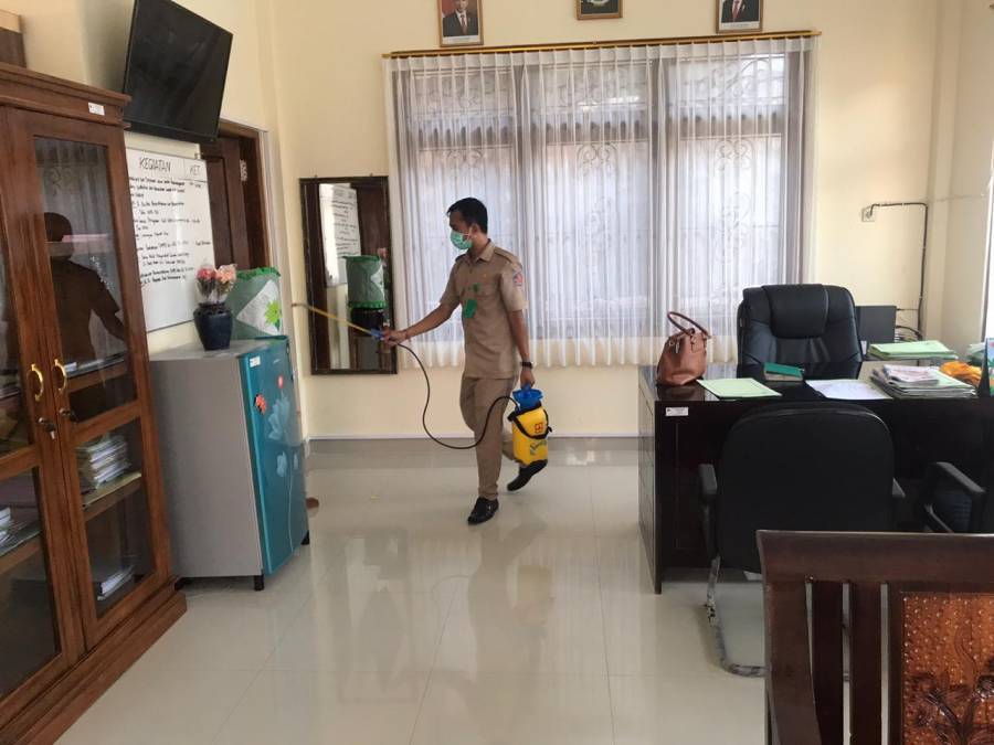 Upaya mencegah penyebaran Coronavirus (COVID-19) melalui penyemprotan desinfektan dilakukan oleh Dinas Perumahan, Kawasan Permukiman dan Pertanahan, Kabupaten Buleleng, Pada hari Senin, 16 Maret 2020.