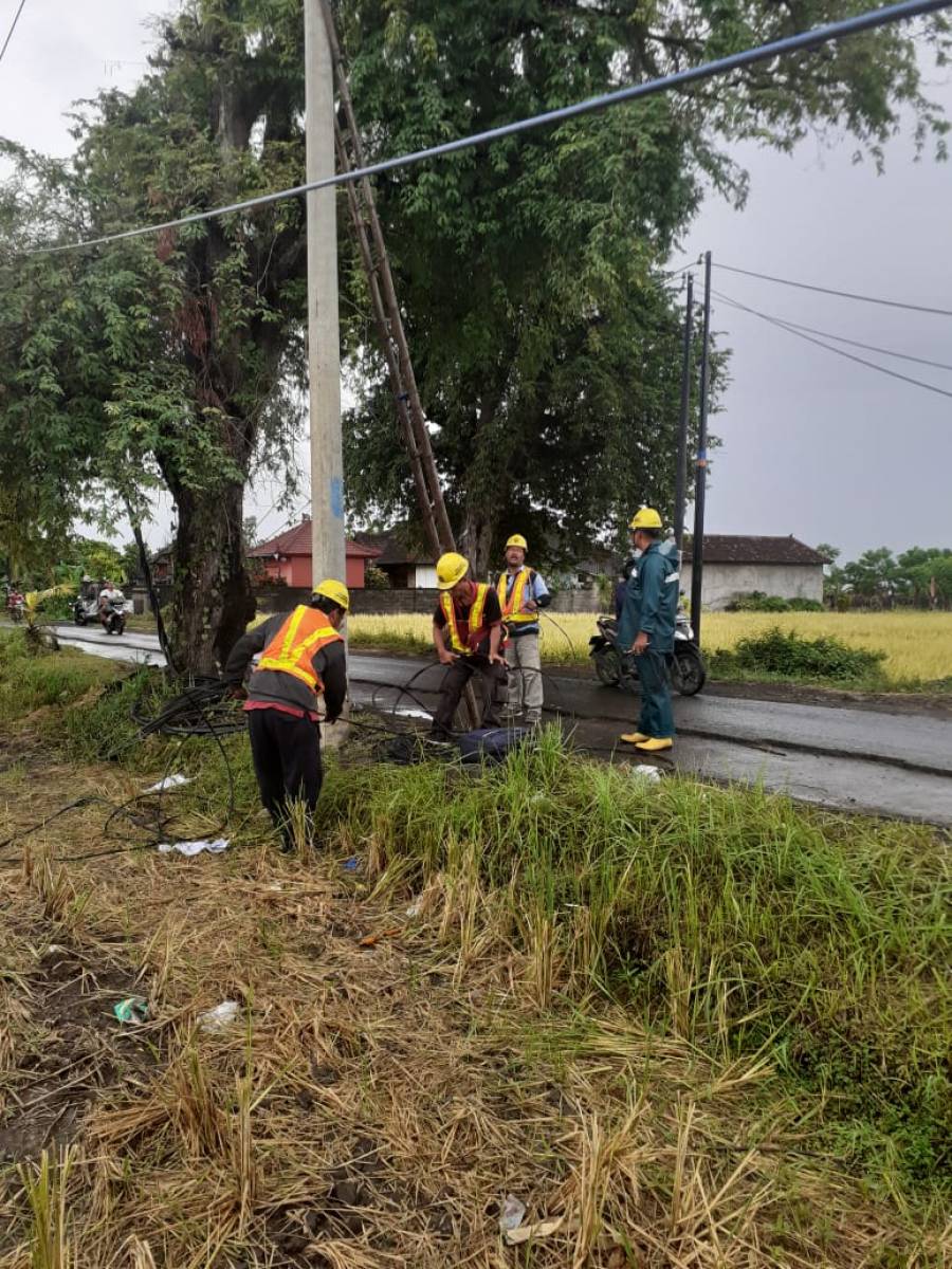 Seharian diguyur hujan, kamis 21 Mei 2020 membuat beberapa tenaga pemeliharaan Lampu Penerangan Jalan Umum Dinas Pekerjaan Umum dan Tata Ruang Kabupaten Buleleng menerima beberapa laporan, salah satunya dari Kepala Dusun Desa Lokapaksa bahwa ada pohon asam tumbang yang menimpa kabel listrik sehingga menyebabkan saluran listrik ke LPJU terputus. Di lokasi yang berbeda tepatnya di Desa Ringdikit, tenaga LPJU kembali menerima laporan bahwa terdapat kabel putus yang menjulur ke jalan dimana dapat membahayakan pengguna jalan yang melintas di sekitar area tersebut. Dengan laporan tersebut tenaga LPJU dengan sigap mendatangi lokasi kejadian dan secara langsung melakukan perbaikan dengan menggunakan truk skylift, sehingga dapat teratasi dengan cepat.