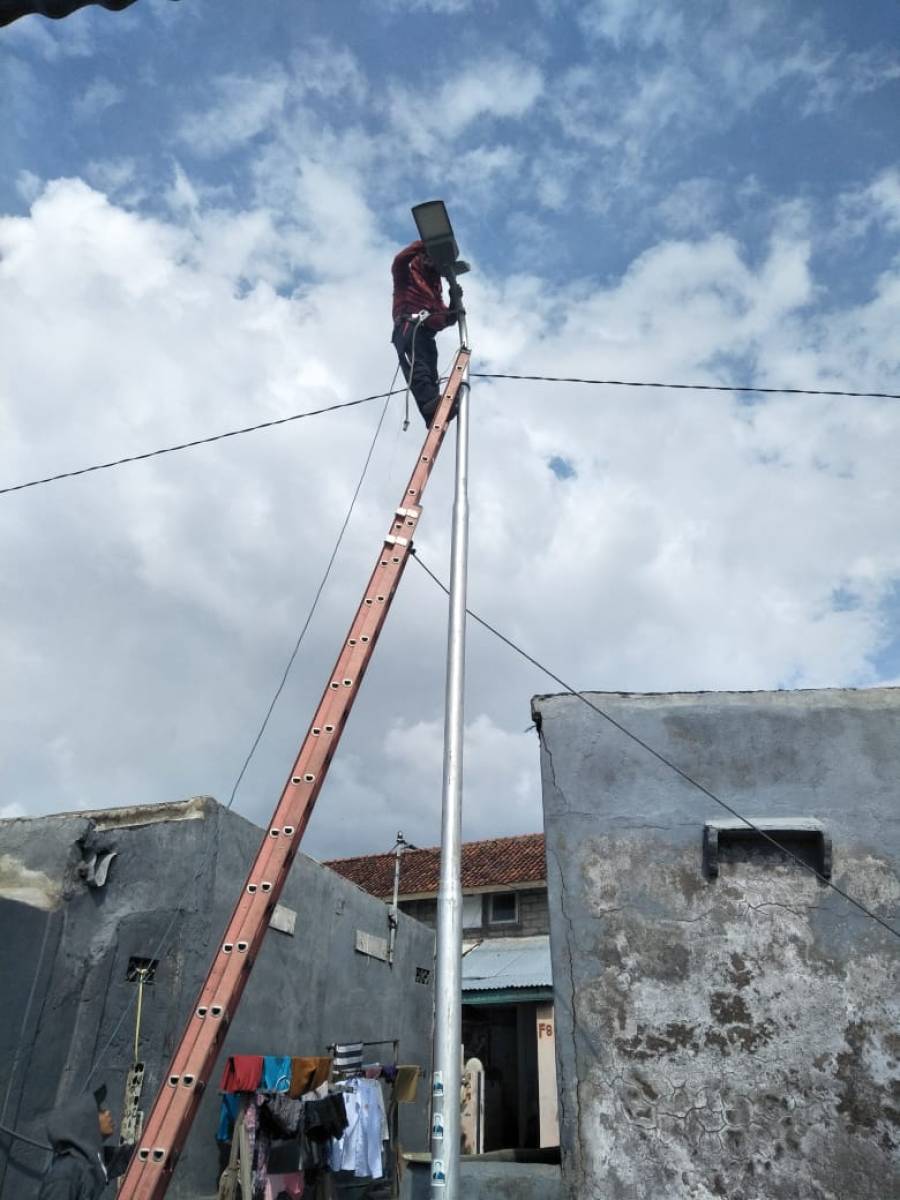 Tenaga pemeliharaan Penerangan Jalan Umum (PJU) Dinas Pekerjaan Umum dan Penataan Ruang Kabupaten Buleleng melakukan Perbaikan Lampu LED 60 watt di Lingkungan Kayubuntil, Kel. Kampung Anyar - Singaraja (14/06/2019). Guna mencapai titik lampu yang akan diperbaiki oleh para tenaga PJU pada lokasi yang tidak memungkinkan untuk menggunakan truk skylift maka akan digunakan mobil pick up dengan tangga fiber dalam pelaksanaannya. *HMd*
