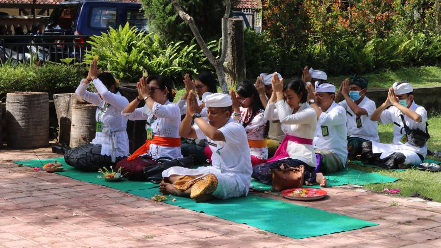 Selasa, 29 Desember 2020 Dinas Perumahan, Kawasan Permukiman dan Pertanahan Kabupaten Buleleng melaksanakan sembahyang bersama yang diikuti oleh Ibu Kepala Dinas Perkimta Ni Nyoman Surattini, ST. Sekretaris Dinas, Kepala Bidang dan Seksi, serta beberapa perwakilan staf. Kegiatan persembahyangan yang bertepatan dengan Hari Purnama sasih kepitu ini juga dilangsungkan persembahyangan untuk Mepamit keluarga Disperkimta karena mulai tahun 2021 pengelolaan Taman/Ruang Terbuka Hijau dialihkan dari Dinas Perkimta ke Dinas Lingkungan Hidup.