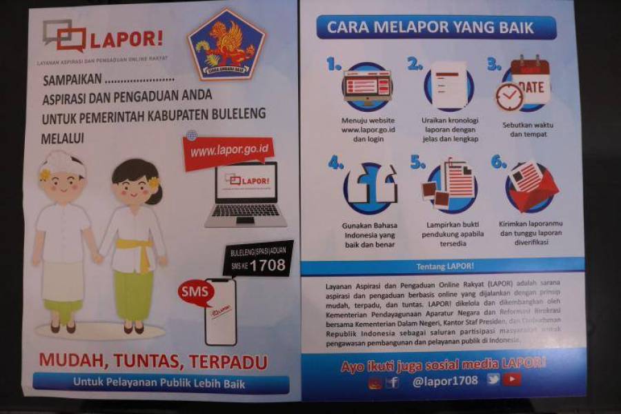 Rapat koordinasi sistem pengelolaan pengaduan pelayanan publik nasional - layanan aspirasi dan pengaduan online rakyat (SP4N - Lapor) di RM. Rangon Sunset Penimbangan. sampaikan aspirasi dan pengaduan anda untuk pemerintah Kabupaten Buleleng melalui Lapor!