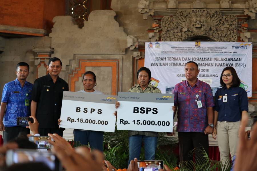 Bantuan langsung diserahkan oleh Bapak Wakil Bupati Buleleng, dr. I Nyoman Sutjidra, Sp.OG yang didampingi oleh Tim Koordinasi Pelaksana BSPS Provensi Bali, Direktur Bank Mandiri Cabang Singaraja, Tim Teknis Pelaksana BSPS Kabupaten Buleleng, Konsultan Individu BSPS Provensi Bali, Sdr. Camat dan Kepala Desa Penerima Bantuan BSPS, Sdr. Koordinator Faslitator dan Tenaga Faslitator Lapangan BSPS Kabupaten Buleleng, Pemilik Toko Penyedia Bahan Bangunan, dan Masyarakat Penerima Bantuan.