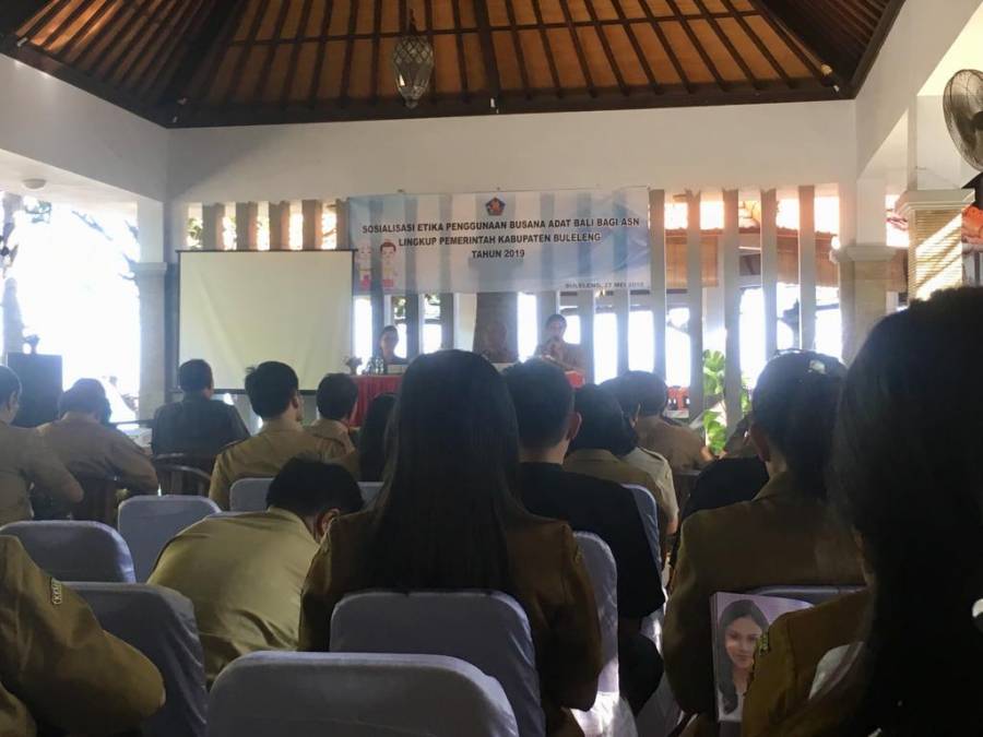 Dinas Perumahan, Permukiman dan Pertanahan Kabupaten Buleleng ikut serta menghadiri Sosialisasi Etika Penggunaan Busana Adat Bali Bagi ASN Lingkup Pemerintah Kabupaten Buleleng Tahun 2019 yang diselenggarakan pada tanggal 27 Mei 2019 oleh Bagian Organisasi Sekretariat Daerah Kabupaten Buleleng di Rumah Makan Rangon Sunset Singaraja. Acara ini di hadiri oleh Bapak I Putu Karuna, SH (Asisten I Setda Kabupaten Buleleng), Ibu Dra I DW. A.A. Sri Ambarawati (Kepala Bagian Organisasi Setda), Ibu Dr. Dra. Anak Agung Ayu Ketut Agung, M.M. (Ketua LPK Agung selaku nara sumber).Sosialisasi ini diadakan guna mensinkronisasi pelaksanaan penggunaan pakaian adat bali bagi ASN yaitu untuk pakaian kerja hari kamis dan saat purnama dan tilem. Dalam sosialisasi ini juga disampaikan tata cara penggunaan berbusana adat bali yang baik dan benar.