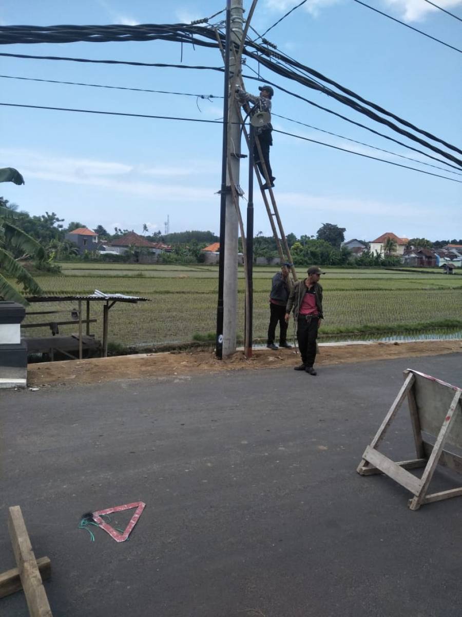 Berlokasi di Desa Tukadmungga, Kecamatan Buleleng, Kabupaten Buleleng (01/02/19) tenaga pemeliharaan Penerangan Jalan Umum (PJU) Dinas Pekerjaan Umum dan Penataan Ruang Kabupaten Buleleng melakukan penanganan lampu penerangan jalan umum yang mati akibat kerusakan/terputusnya kabel line penerangan jalan umum.