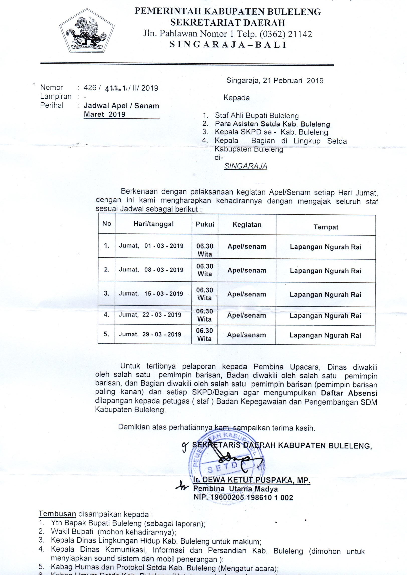 JADWAL APEL KRIDA BULAN MARET 2019