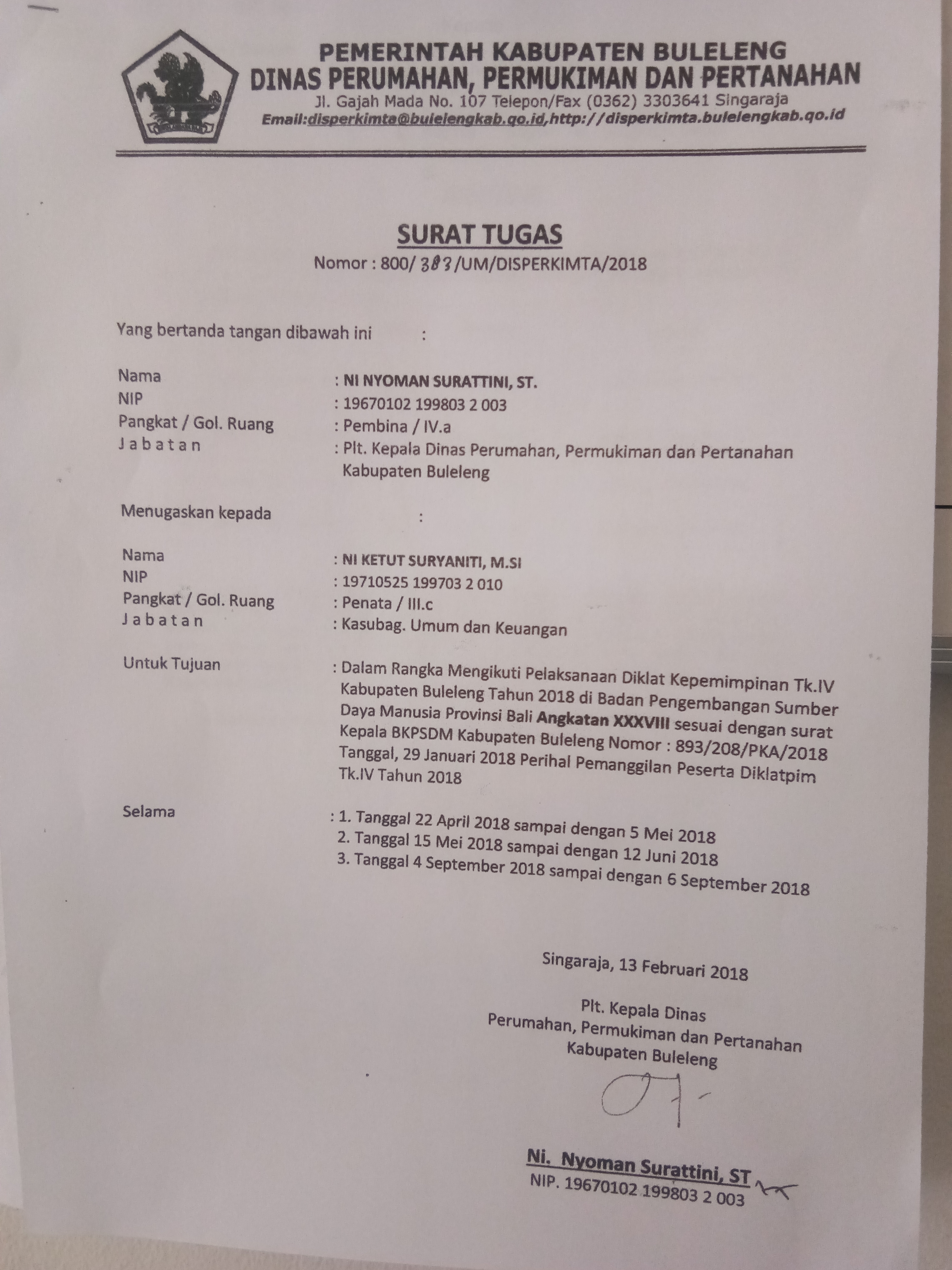 Dalam rangka mengikuti pelaksanaan diklat kepemimpinan Tk.IV Kabupaten Buleleng tahun 2018